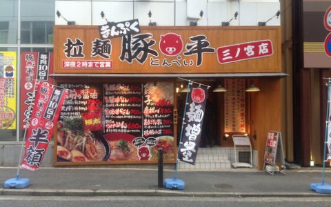 豚平という名のラーメン屋は、全国にいくつもありますが、関係ないようですね。ここは居酒屋はたごやチェーンや漁火、それからボウリングやキャンプ場などを経営するH&Rコーポレーションが経営する唯一のラーメン店のようです。それにしても神戸はトンコツラーメン多いなぁ・・・。