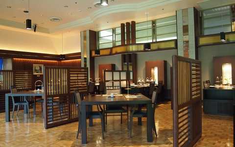 庭園が見えるレストランはなみずきでの食事でした。外観の古さとは対照的に、レストランの内装は豪華。庭園の景色も素晴らしいです。