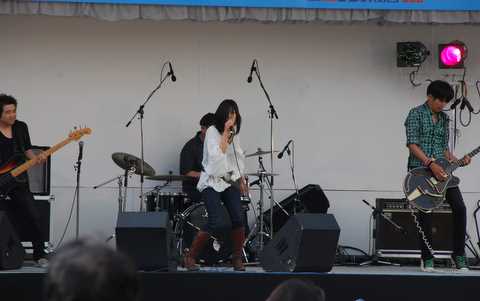三ノ宮駅南側の交差点には屋外ステージが設営されていて、バンド演奏などが行われています。