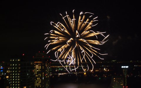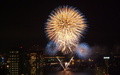 小さな連続打ち上げから始まって、徐々に大きく。