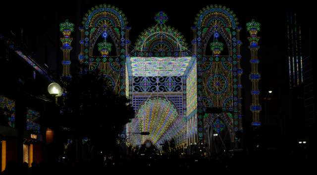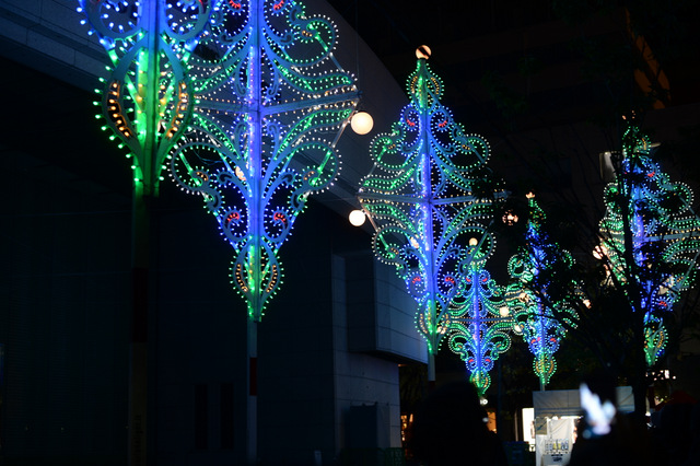 それでも何とか光のトンネルを通りぬけて、東遊園地のライトアップの写真を撮り始めたところで消灯。先週日曜日に引き続き、観覧途中で消えちゃいました。もう少しサービスで遅らせてくれても・・・