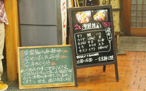 後から入ってきた若い3人組みの男の子達は、何も見ずにマグロ丼を頼んでいました。これも色んなマグロが乗っかっていて、旨そうだった・・・。