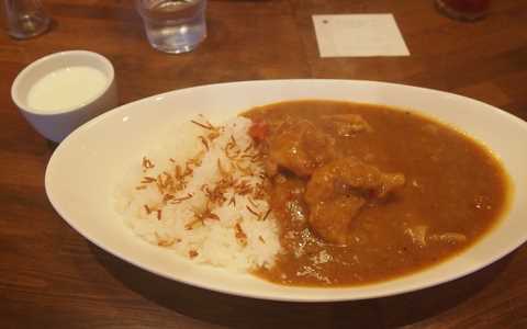 さて肝心のカレーは、野菜の甘みが生み出す優しい味と、スパイスのパンチが良く効いた、なんとも美味しいカレーです。家で野菜を摩り下ろしながら作るカレーに似てるかな。大きめのチキンもカレーに良くなじんでいます。ご飯に振りかかっているのは、フライドオニオンです。