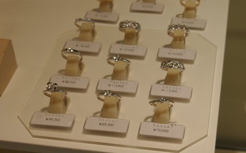 真珠のジュエリーが多いですが、ダイヤのピアスや指輪なども。