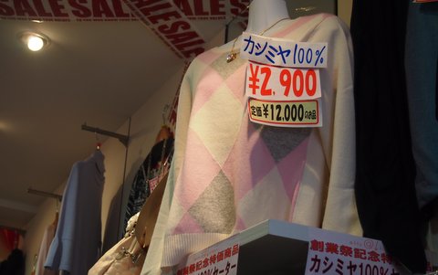 店内に入るとカシミヤのセーターが2,900円だったり。