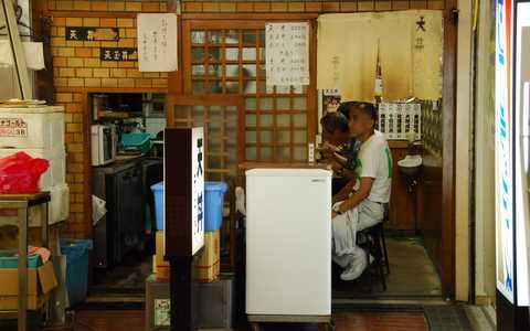 カツ丼吉兵衛は元々天丼吉兵衛からその歴史が始まったそうです。そこからカツ丼屋が暖簾分けして、今はカツ丼屋の方が大人気。すりきれた暖簾が歴史を物語ります。