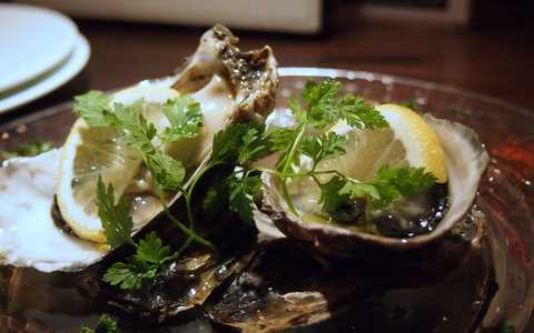 で、せっかくなので、盛られた魚介からカキを注文し、レモン風味の生牡蠣でいただきました。