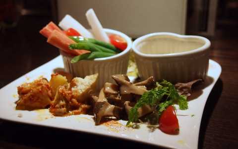 前菜は何種類かあり、こちらで選んだものを盛ってくれます。3種Setで980円。バーニャカウダのソースがクリーミーでGood!