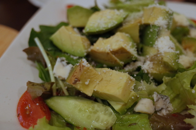 アボガドとゴルゴンゾーラのサラダ。パルメザンチーズがかかっています。
