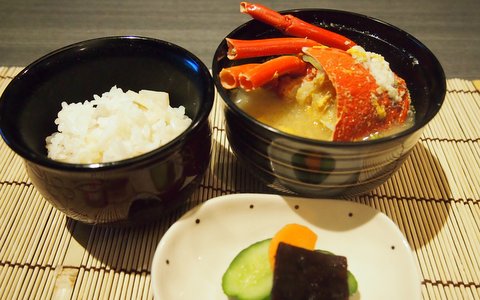 伊勢海老のお味噌汁とタケノコご飯。ご飯も味噌汁も美味しかったなぁ。これでお腹一杯。