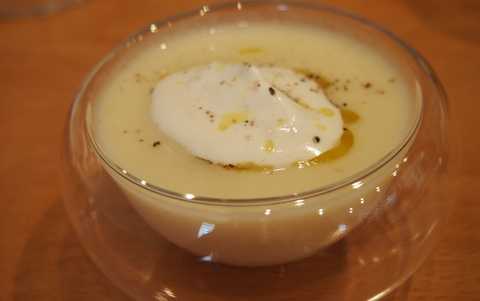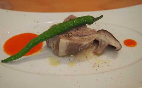 冬瓜のスープにミョウガを使ったサワークリームが添えてあります。このクリームが酸味が効いていて、あっさりとして冬瓜のスープのアクセントに。妻が抜群に旨い!と言ってました。