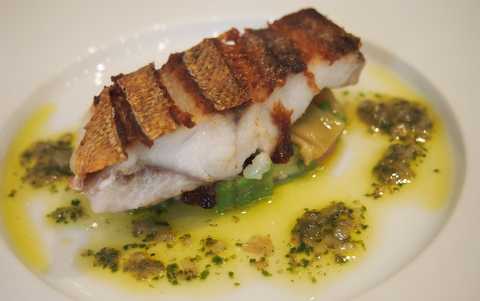 ですが、パリっとした皮が美味しいくて、淡白な白身のお魚とバジルソース、そして魚の下に隠れているオクラなどのお野菜が良くあっています。