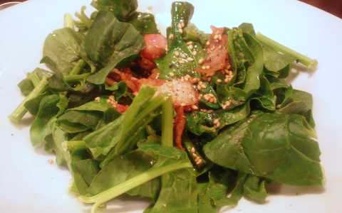 ①かりかりベーコンのほうれん草サラダ