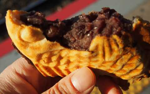 鯛焼きですが、サイズは標準。皮がパリっとしていて美味しいし、普通のものよりも皮が薄い気がします。