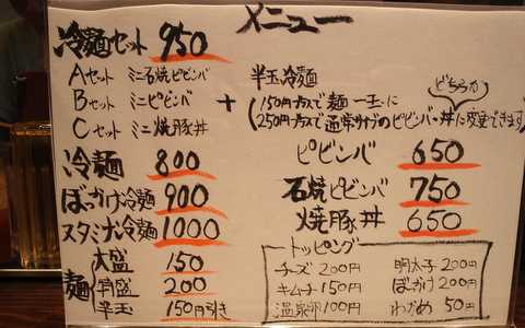 メニューは以下の通りで、ミニ冷麺とミニ丼の冷麺セットが結構人気のようでした。