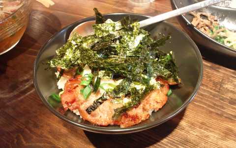 妻が注文した冷麺セットのミニ焼豚丼。普通に美味しい。