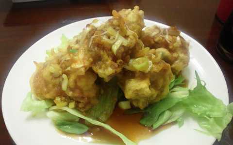 ここからちょっと変り種。黄金揚げとの事ですが、つまりは豚足のから揚げ。見た目は鶏のから揚げですが、食べた瞬間、うん、これは豚足って分かります。甘酢いっぱいソースがかかっていて南蛮漬けのよう。