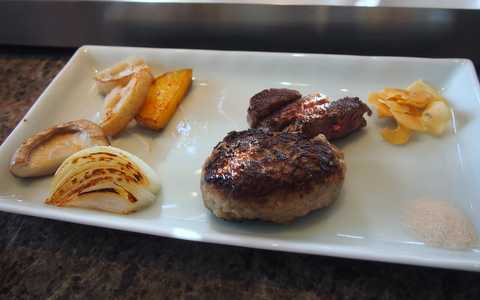 鉄板焼は、野菜がいくつかつきます。この野菜も結構美味しいです。ハンバーグはかなり小ぶりでしたが、ねぎのソースがまた良くできていてこちらも満足感がありました。