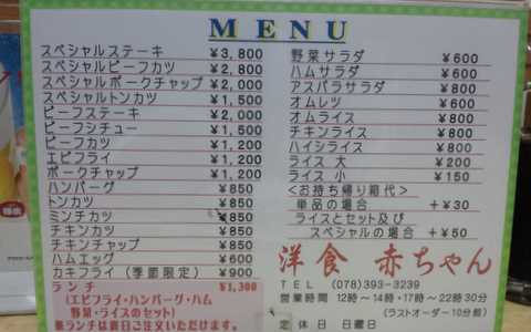 通りがかりで気になっていた洋食の赤ちゃん。会社帰りの夕食に思い切って入ってみました。場所は生田神社の門の手前を右側(東門街)に入って左手の路地にあります。