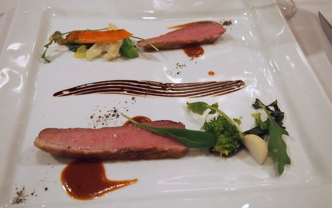 写真は自分がオーダーしたクロダイのポワレ、フランス産きのこのソース。あと鴨のロティ。妻とも言っていたのですが、全体的にメインが、もうひと押し何かが欲しかった感じがしました。