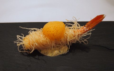 繊細なお料理ですね。たるたるソースと、えびの泡のソースが合っています。