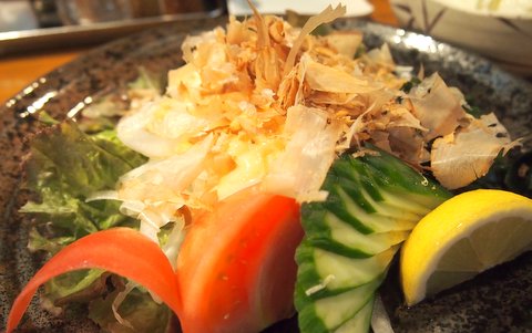 こちらオニオンスライスサラダ。てっきりポン酢かと思いきや、マヨネーズベース。でもこれ結構美味しかった。320円の値段は秀逸ですね。