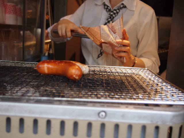 途中ソーセージを焼いていたので、立ち寄って間食。
