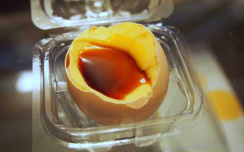 これって、玉子そのものなんですね。玉子を割らずに特殊な機械で遠心力を使って、黄身と白身を混ぜているようです。で、それで低温加熱するとプリン状になる。