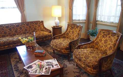 風見鶏の館は、設計者・家主共にドイツ人で、ドイツの厳格で重厚な洋館です。これに対して、萌黄の館は、家主はハンター・シャープというアメリカ総領事、設計者もA.N.ハンセルというイギリスの建築家。コロニアルスタイルという、軽い雰囲気の洋館になっています。