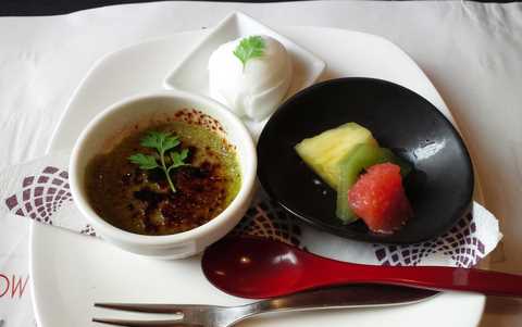 抹茶プリン、柚子シャーベット、フルーツ。これでお腹一杯!