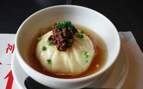 これ看板メニューみたいですね。豚まんに牛そぼろ、少し濃いめの餡がかけてあります。そう言えば、以前鍋に豚まんをいれると旨いとTVでやっていたけど、そんな感じかなぁ。悪くないです。