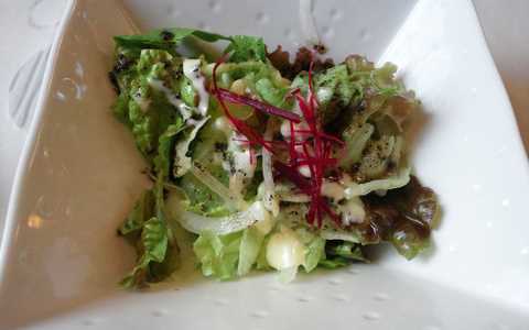 柚子マヨネーズのさっぱりした味付けに黒ゴマの風味が効いたドレッシング。これ夫婦ともども気に入りました。