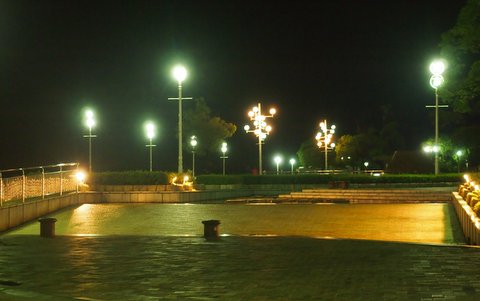 夜でもそれなりに明るくて、怖くは無いです。晴れてると、カップルが多いのですが、丁度雨あがりで閑散としていました。