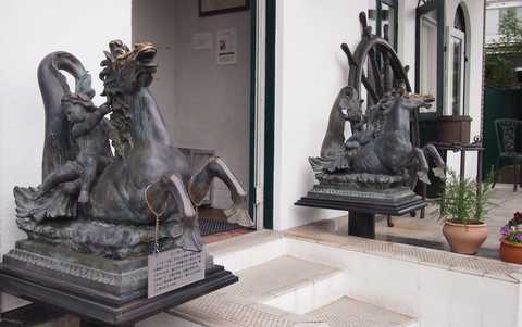 2頭の頭に触ると、願い事がかなうと言われています。ちなみに現在旧居留地にあるパナマ領事館は、神戸で唯一の外国領事館だそうです。