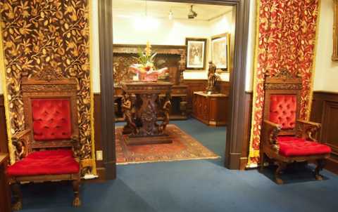 座って願い事をすると、願いがかなうという椅子。向かって右側が女性用、左側が男性用だそうです。