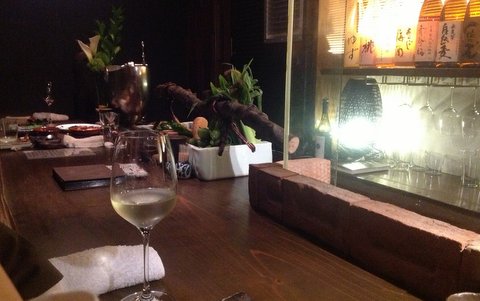 ようやく見つけた雑居ビルの1F奥の扉。本当にここかなぁ・・・と言いながら扉を開けて中に入ってみると、カウンタだけのおしゃれな空間がありました。The隠れ家って感じ。