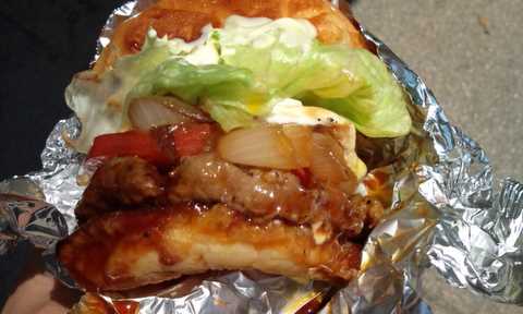 難点は食べにくさ。ボリュームがある上に、ジューシーなソースがしたたり落ちるので、手は間違いなくべとべとになるんですね。口コミでは、店員のサービスが悪いとか書かれていますが、個人的には気になりません。