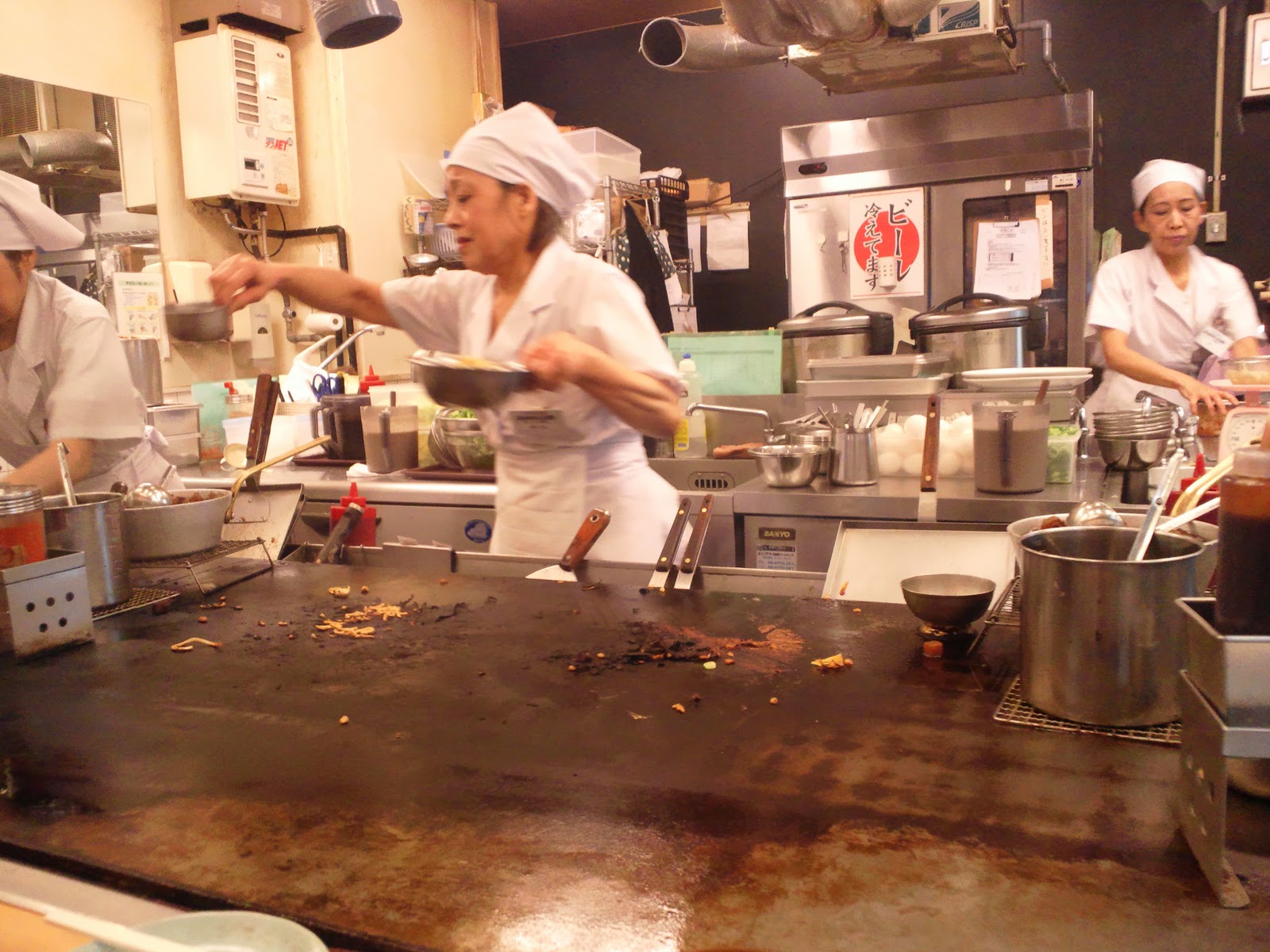 時間も11時過ぎと早く、幸い待たずにカウンターに座れました。ここ、まず気付くのが店員さんが、年配の女性の方ばかりなのです。5人くらい、わいわい言いながら注文をさばいています。