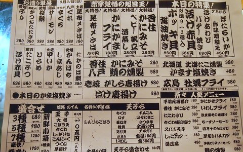 メニューの特徴は海の幸。そう言えば店先に魚の箱が一杯積んである。