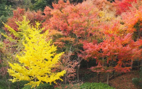 園内、いたるところで紅葉を見る事ができます。
