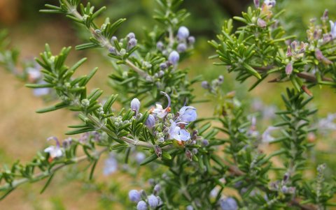 ローズマリーの花があちらこちらで咲いています。こんな季節に咲くんですね。