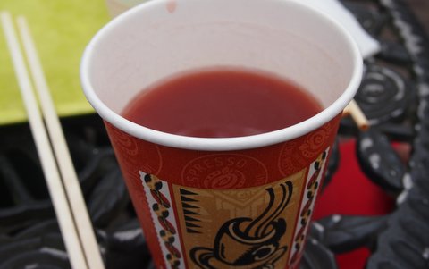 早速、買ってきて、一口。暖か~い、サングリアみたいで美味しい・・・。