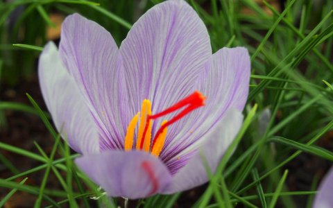 始めて見たサフランの花。この赤いめしべが香辛料として使われます。以前書いた記事、『世界で最も高価な食べ物TOP10に神戸牛がランクイン!』の中で、神戸牛と並んでサフランも入っています。