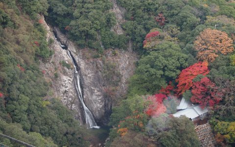 途中ロープウェイ眼下の布引の滝周辺にも紅葉が見られます。