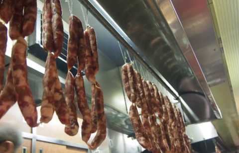 でもカウンター前にはこんな腸詰がぶらさがっていたり、台湾風?