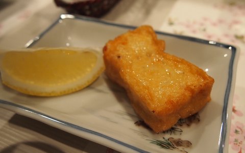 こちらはお店の名物、串コースの最初に出てくるはんぺん。あげたてはとってもふわふわです。美味しい。