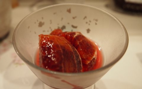 デザートは果物のコンフォート。季節によって果物は使い分けておられるようですが、今日はオレンジでした。