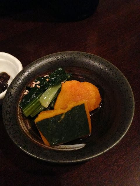 いかと雲丹。暖かい揚げ物と合わせているからか、雲丹の量が少ないのか、あまり雲丹と風味を感じませんでした。それとイカが少し硬いですね。ちょっともったいない感じの一品。
