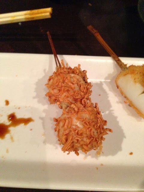 串揚げは一本180円のお任せコースが売りのようで、ストップと言うまで出てきます。値段が値段だけに全般に高級食材が使われている訳ではありませんが、その分創意工夫で満足して頂こうという感じでしょうか。
