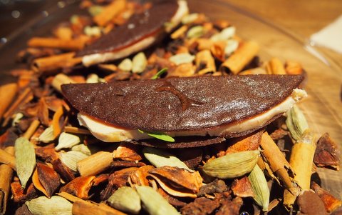 こちらは薄めのフォアグラをカカオの焼き菓子で包んだ一品。これもそうですが、手で食べてくださいというものが結構多かったですね。ハーブの香りがして、こちらも美味しかった。
